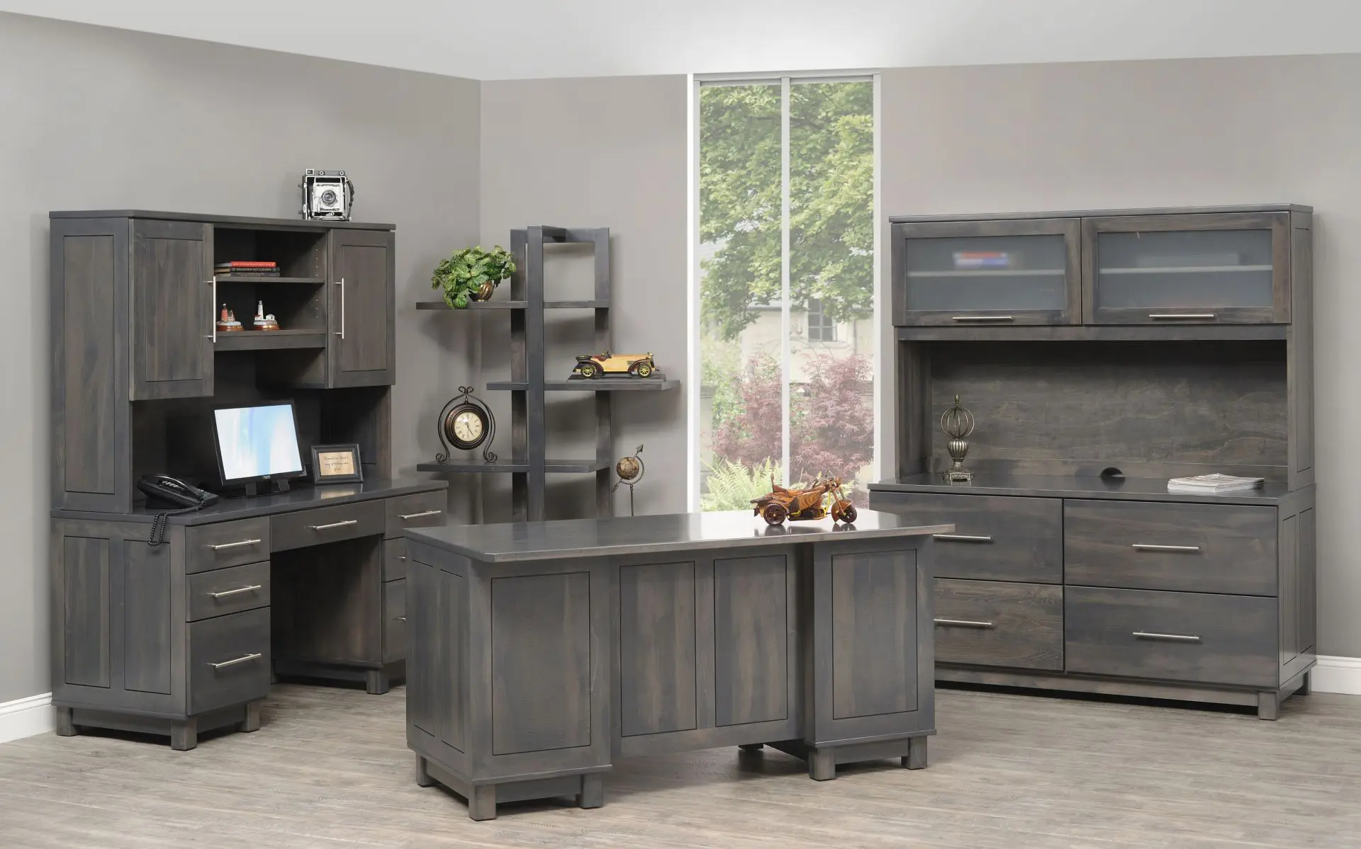 The Urban collection is Amish made in Ohio. It is made of solid maple wood. You can change the color and hardware for the same price. We can also change configurations and sizing if needed. There are many different pieces to give you the complete home office you need.