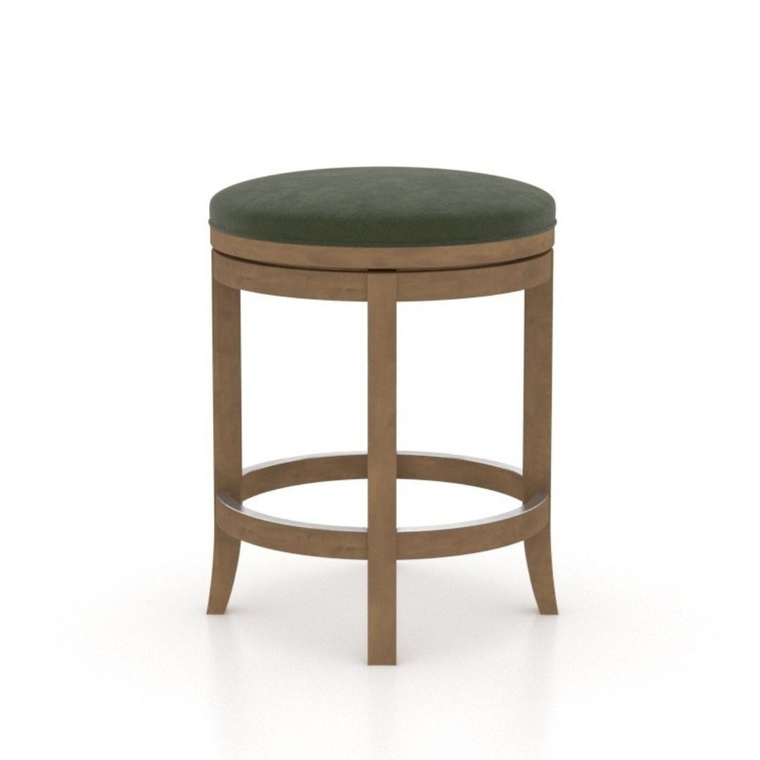 Canadel stools are 100% North American made in Canada out of Birch wood. Ā ThisĀ is a backless swivel stool available at counter, bar and spectator (34″) height. Ā It comes in over 40Ā different wood stains and 300 different fabrics.