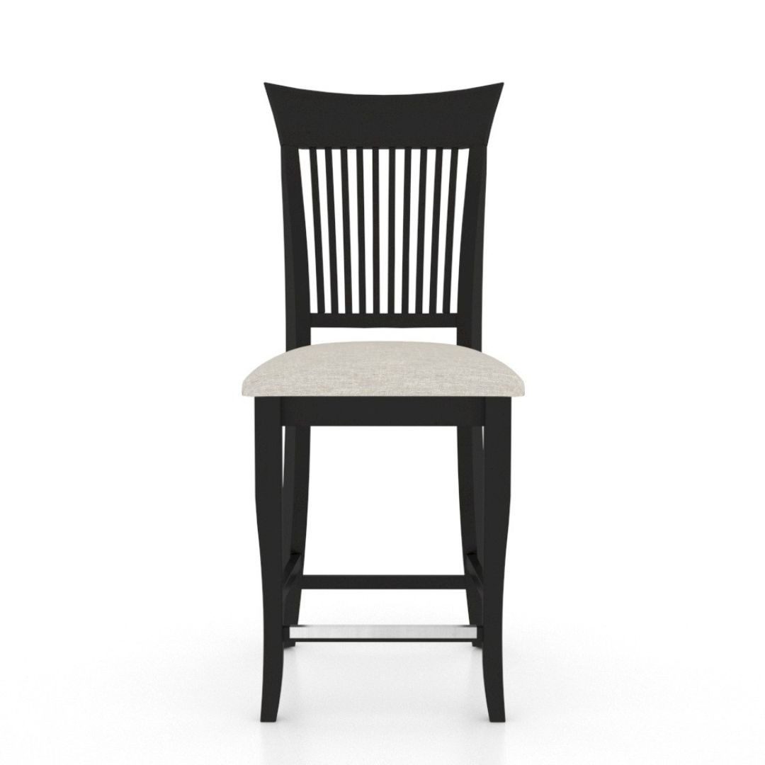 Canadel stools are 100% North American made in Canada out of Birch wood. Ā ThisĀ is a stationaryĀ stool available at counter height only. Ā It comes in over 40Ā different wood stains and 300 different fabrics. Ā Seat can also be woodĀ if preferred.