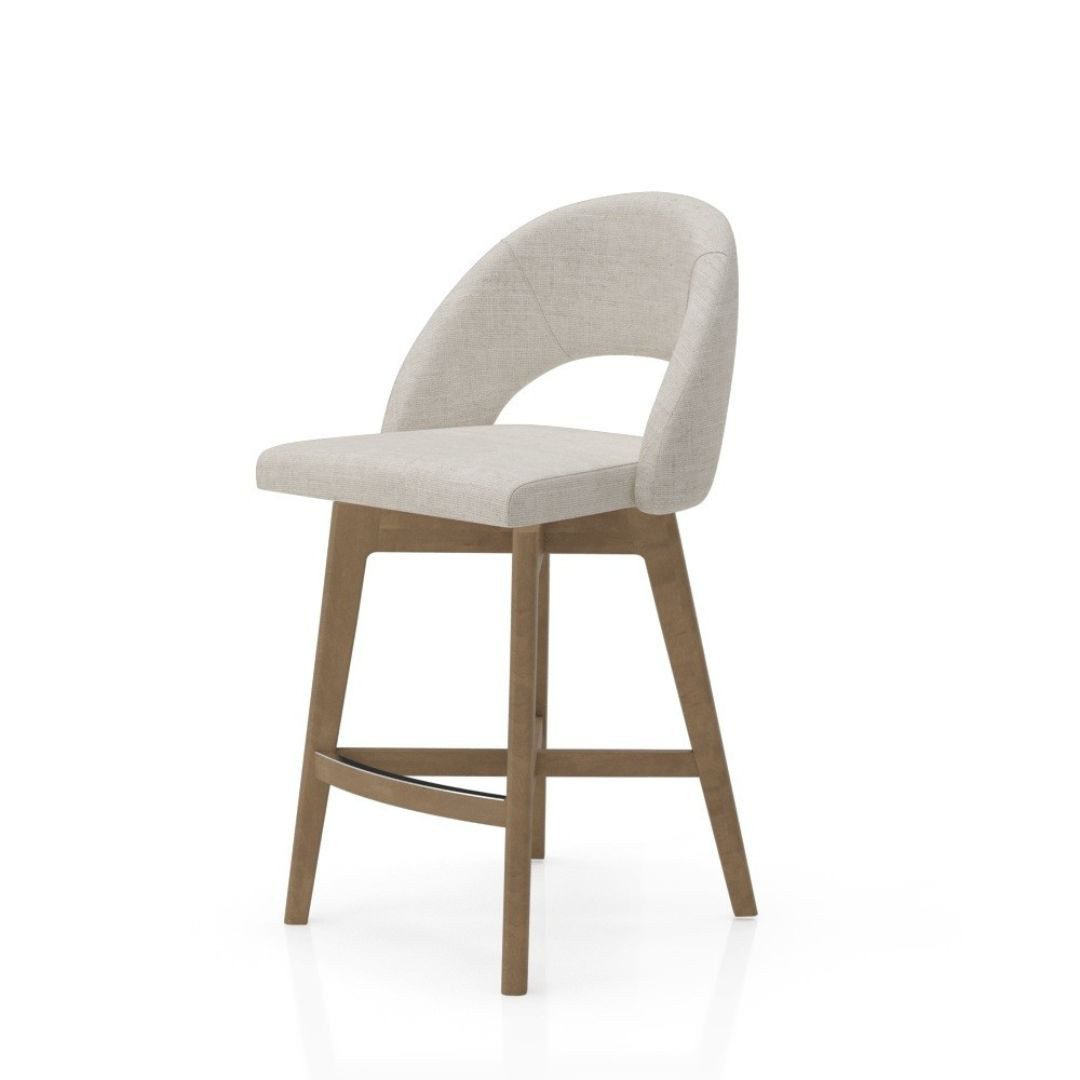 Canadel stools are 100% North American made in Canada out of Birch wood. Ā This is a swivel stool available at counter height. Ā It comes in over 40 different wood stains and 150 different fabrics.