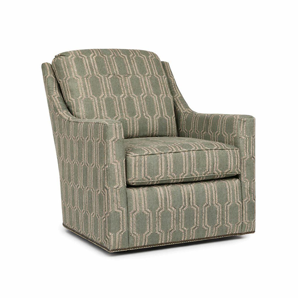 The 560 chair is all American made by Smith Brothers. It’s a scoop arm swivel chair. Available with optional glider mechanism.Ā Comes with or without nailheads.Ā Available in over 1,000 different fabrics and leathers.