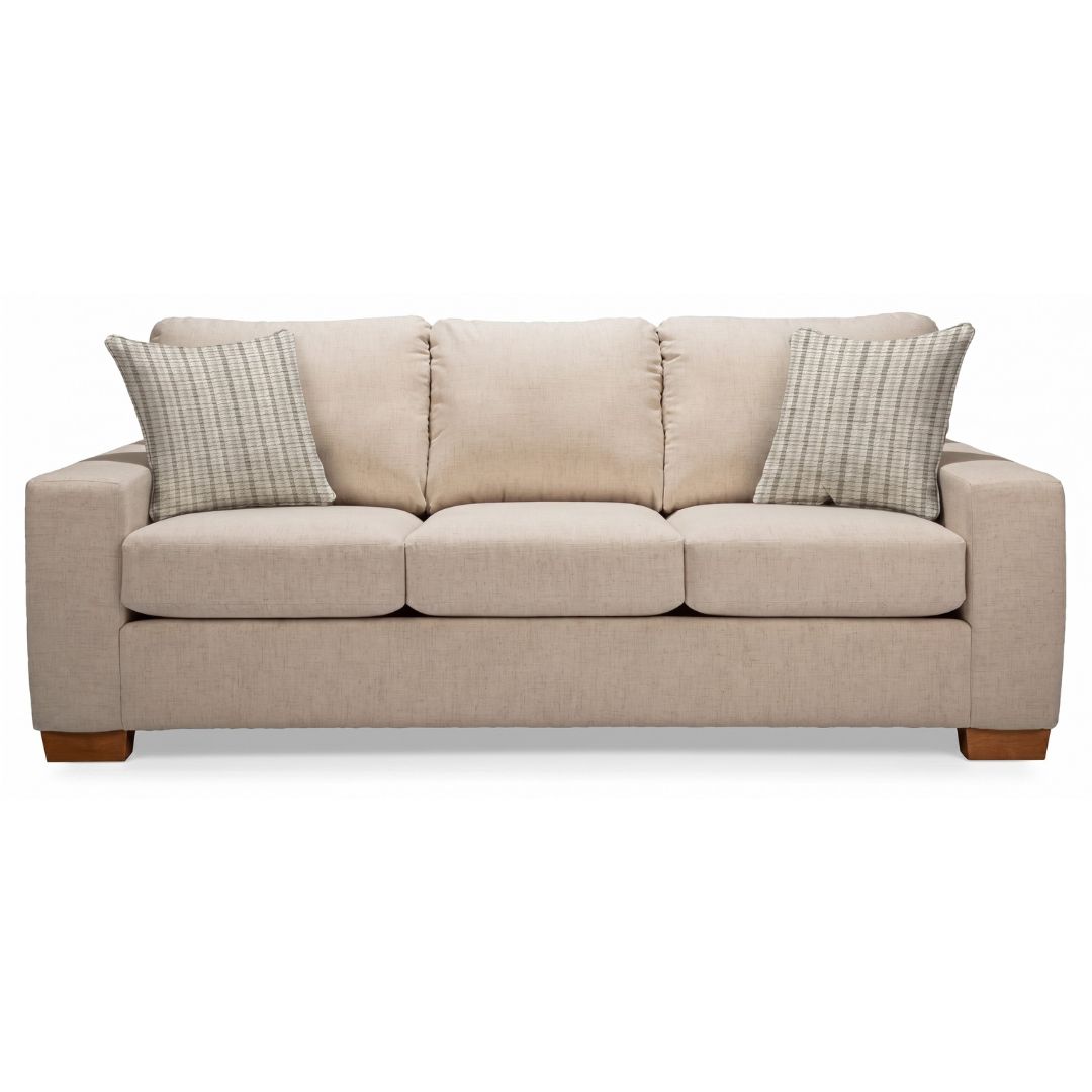 Also called the Alessandra Connections, the 2A/3A by Décor-Rest is North-American made in Canada. It is a classic sofa with a box seat and a semi-attached back that can be dressed up or down depending on the fabric and arm style you choose. With 3 arm styles to choose from, including a large track arm, a flared arm, and a rolled arm, this sofa’s design is fully customizable to the style of your choosing at no additional cost.