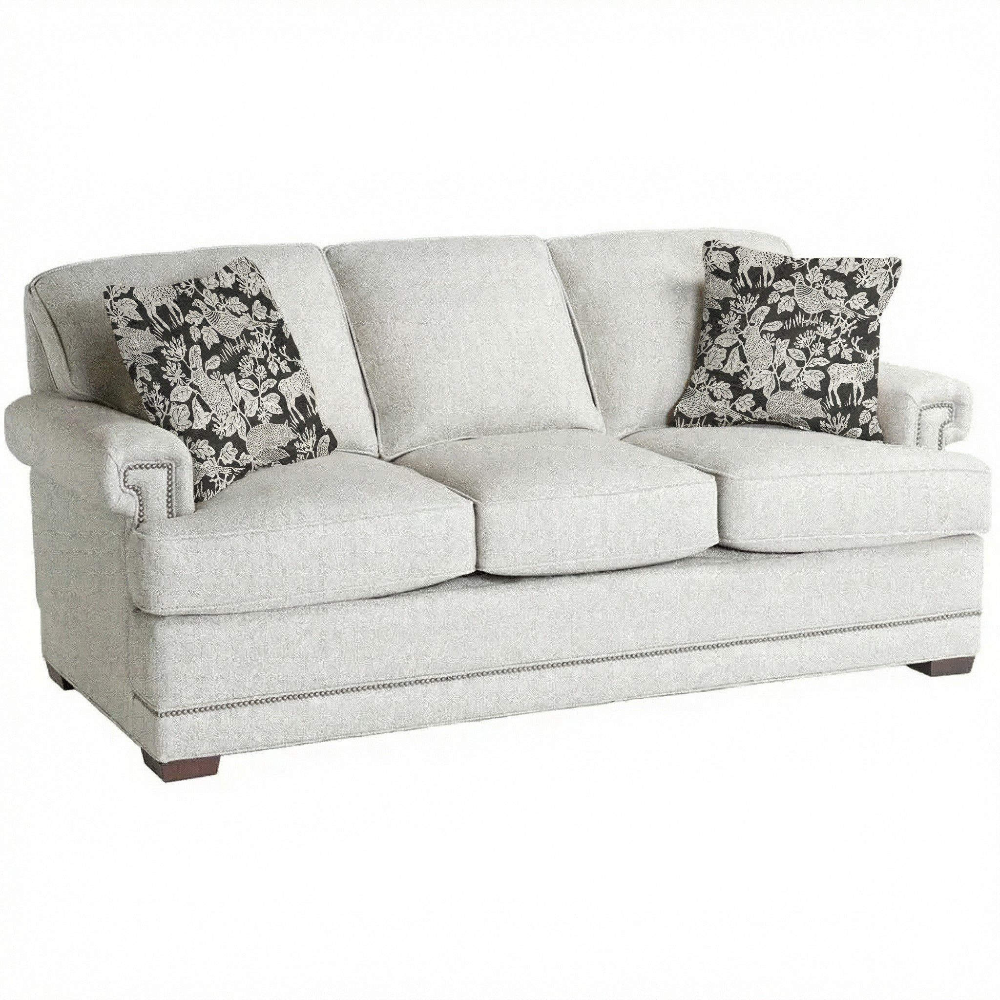 The Bryan sofa is all American made by Marshfield.Ā  It has a Key arm and semi attached back. Available in over 1,000 different fabrics and leather.