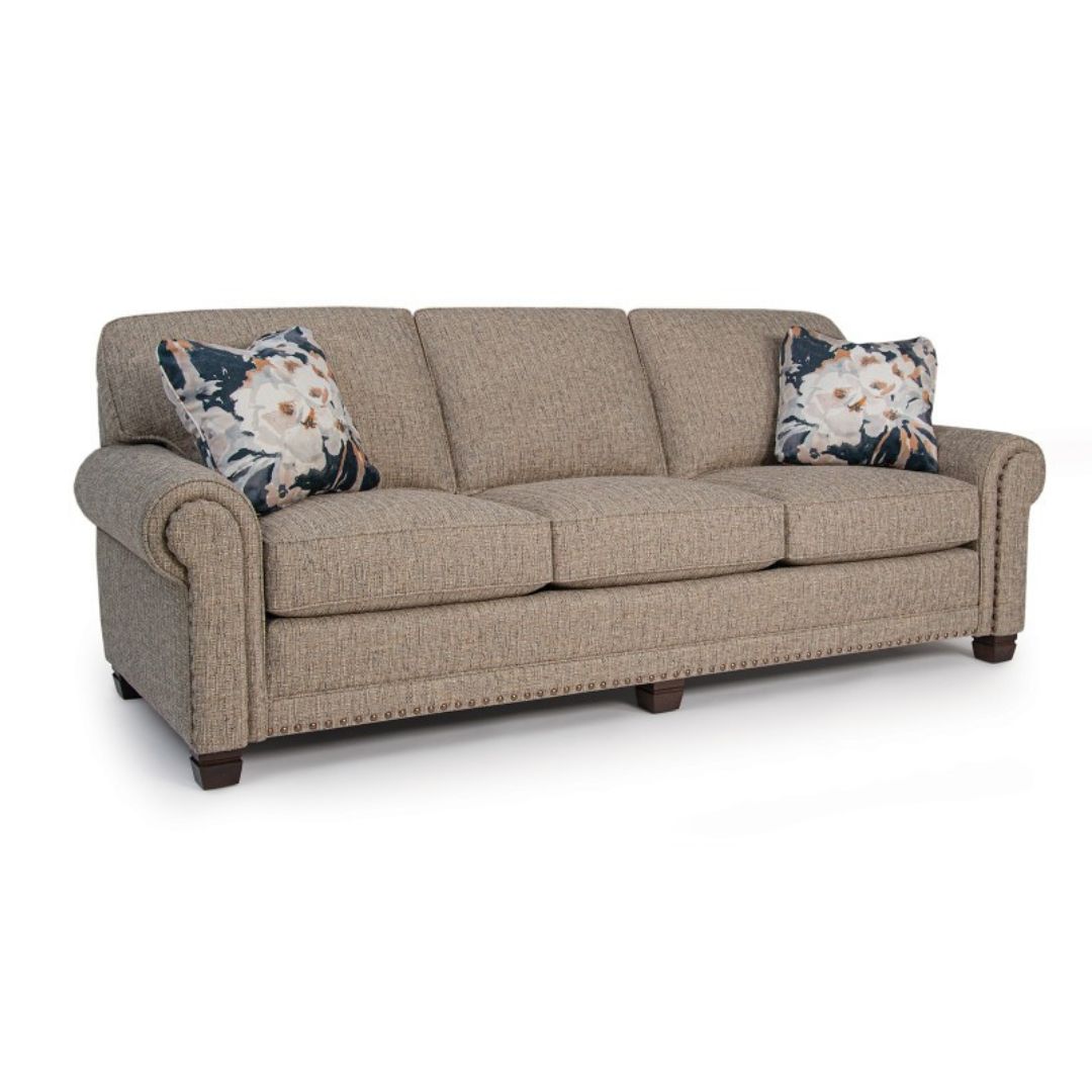The 393Ā is all American made by Smith Brothers. It’s a rolled arm sofa with semi-attached back cushions. Available with or without nail heads.