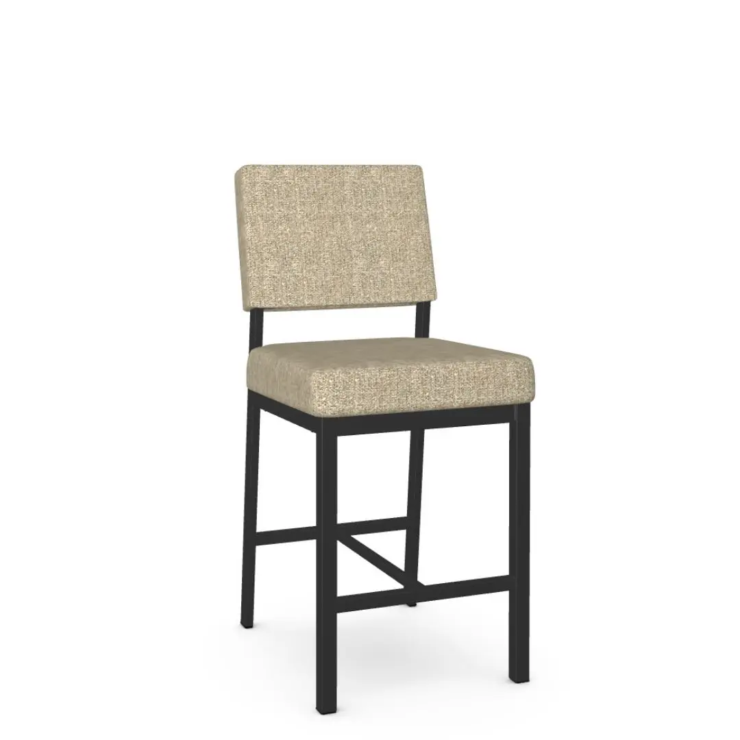 The Mathilde stool by Amisco is North American made in Canada. It is an upholstered back swivel stool with an ultra sturdy frame and well cushioned seat. It comes at counter, bar or spectator (34″) height. It is available in over 10 different metal colors and 40 different fabric options.